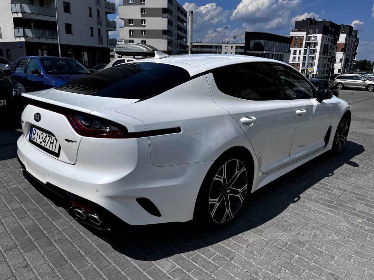Wypożyczalnia samochodów - SAVVI CAR RENTAL Rzeszów Wołyńska 7 - zaprasza do skorzystania z usługi wynajmu pojazdu marki KIA STINGER GT z bardzo z dynamicznym silnikiem benzynowym o mocy 377 KM, skrzynią automatyczną, napędem 4x4 oraz pełnym możliwym wyposażeniu